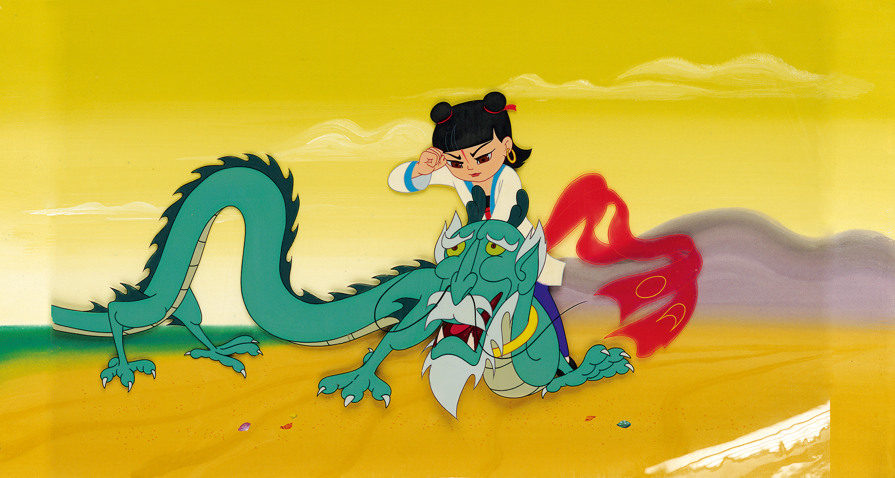 作品简介:《哪吒闹海》是由上海美术电影制片厂制作的一部动画电影。它是我国第一部大型彩色宽银幕动画长片,在国内外各大电影节上均获得过多个奖项,主要讲述了陈塘关李靖之子李哪吒与东海龙宫之间的恩怨情仇。它的美术设计由中央工艺美术学院院长张仃教授担纲。这里展示的是该片的赛璐璐片。