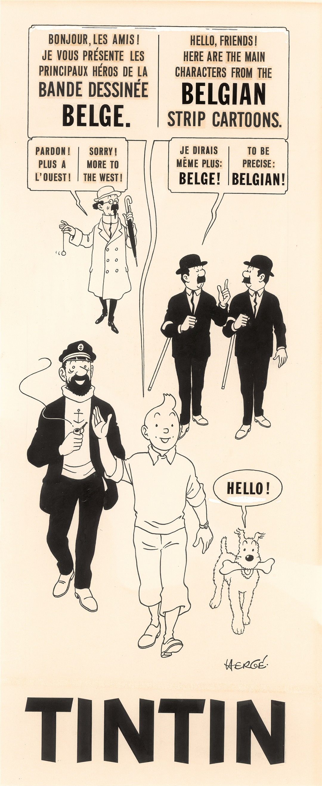 作品简介:竖幅画作在漫画中较为大件,是1967年埃尔热先生特地为蒙特利尔万国博览会的比利时国家馆绘制,展出在比利时国家馆中,代表了比利时人的精神风貌,原来万众瞩目。